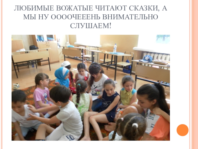 Слайд 16ЛЮБИМЫЕ ВОЖАТЫЕ ЧИТАЮТ СКАЗКИ, А МЫ НУ ООООЧЕЕЕНЬ ВНИМАТЕЛЬНО СЛУШАЕМ!