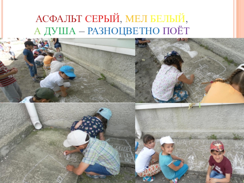 Слайд 5АСФАЛЬТ СЕРЫЙ, МЕЛ БЕЛЫЙ, А ДУША – РАЗНОЦВЕТНО ПОЁТ