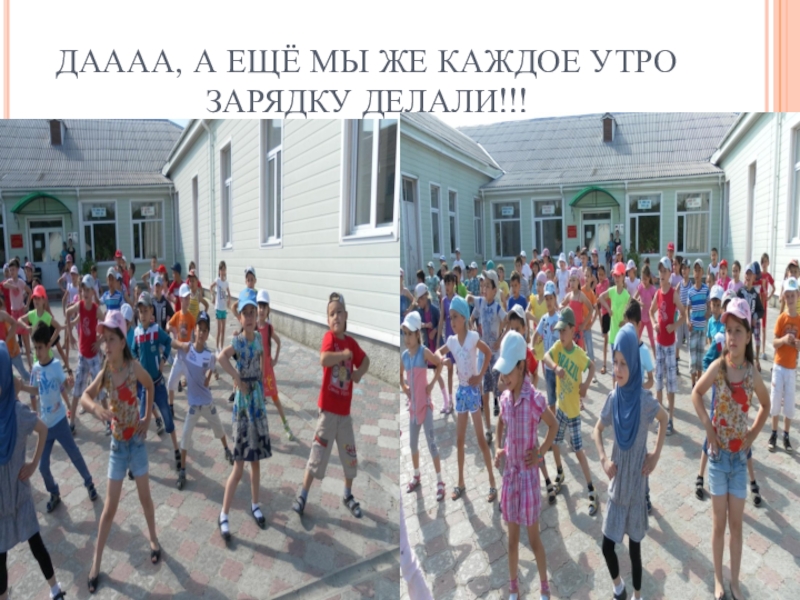 Слайд 12ДАААА, А ЕЩЁ МЫ ЖЕ КАЖДОЕ УТРО ЗАРЯДКУ ДЕЛАЛИ!!!
