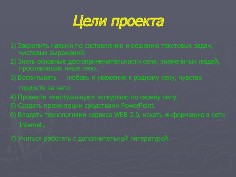 3) Воспитывать любовь и уважение к родному селу, чувство гордости за него