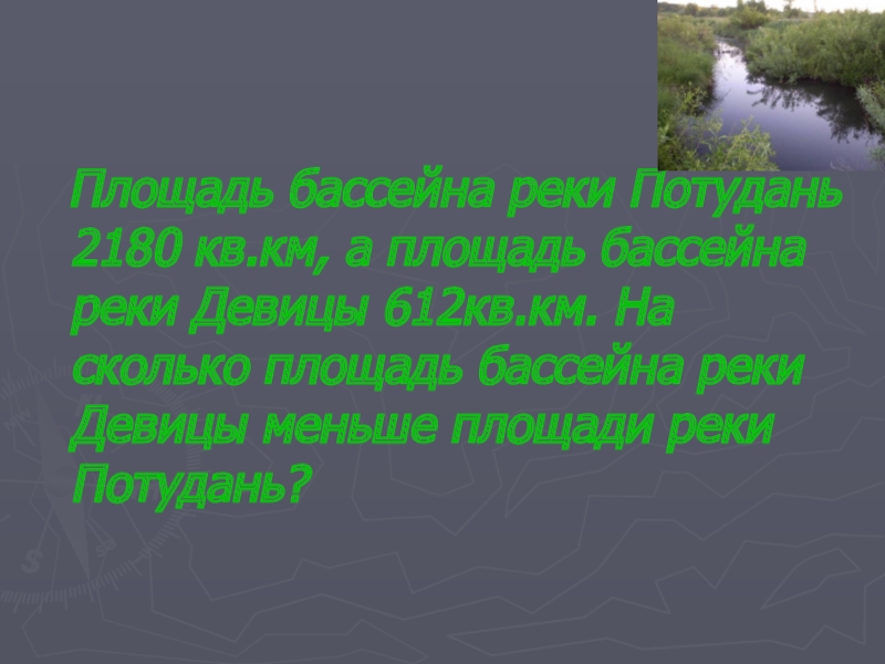 Девицы 612кв.км. На сколько площадь бассейна реки Девицы меньше площади реки Потудань?