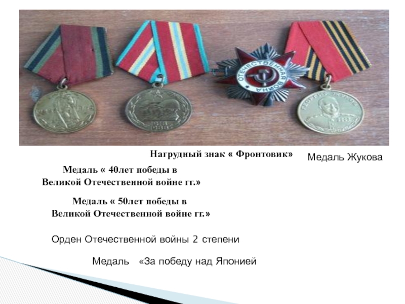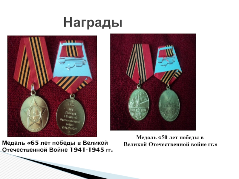 Медаль « 50-летию Победы в В.О. войне 1941-1945 г. г.»