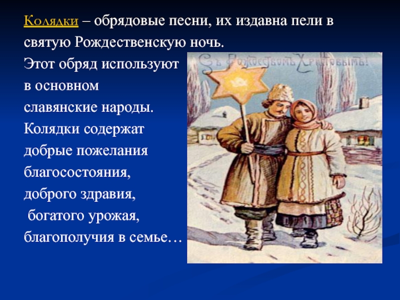 Слайд 3Колядки – обрядовые песни, их издавна пели в
