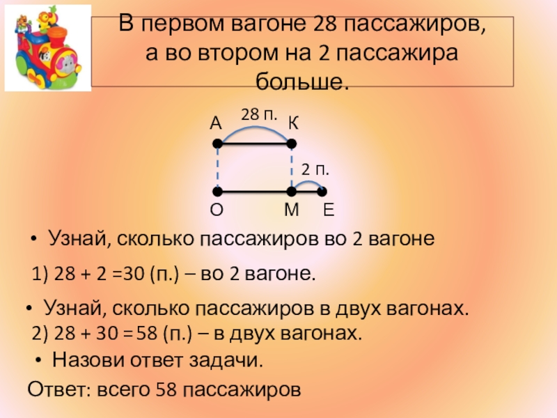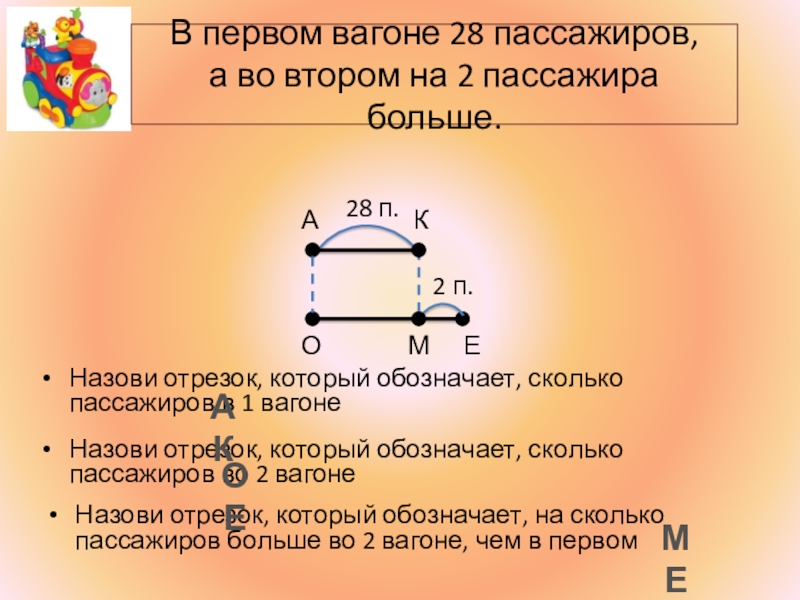 Назови отрезок, который обозначает, сколько пассажиров в 1 вагоне