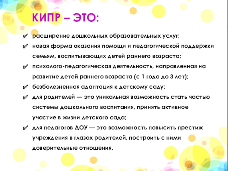 Дети посещают КИПР вместе с родителями (законными представителями).