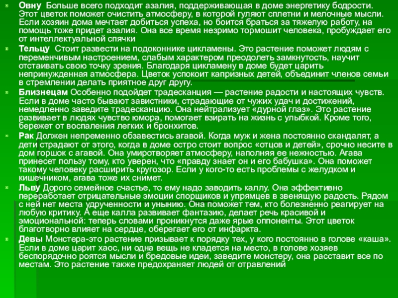 Слайд 45Овну Больше всего подходит азалия, поддерживающая в доме энергетику бодрости. Этот