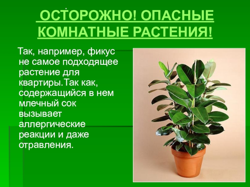 Слайд 36 Так, например, фикус не самое подходящее растение для квартиры.Так