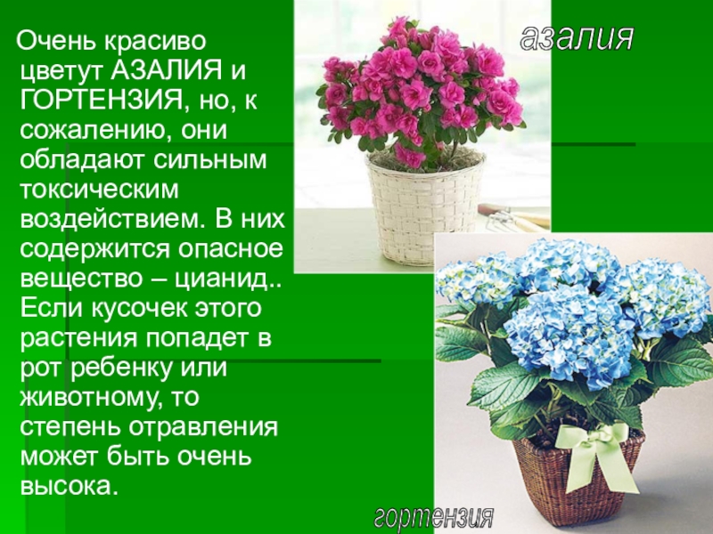 Слайд 37 Очень красиво цветут АЗАЛИЯ и ГОРТЕНЗИЯ, но, к сожалению,