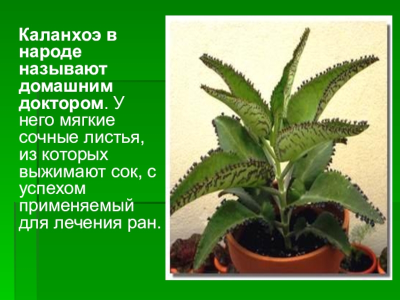 Слайд 32 Каланхоэ в народе называют домашним доктором. У него мягкие