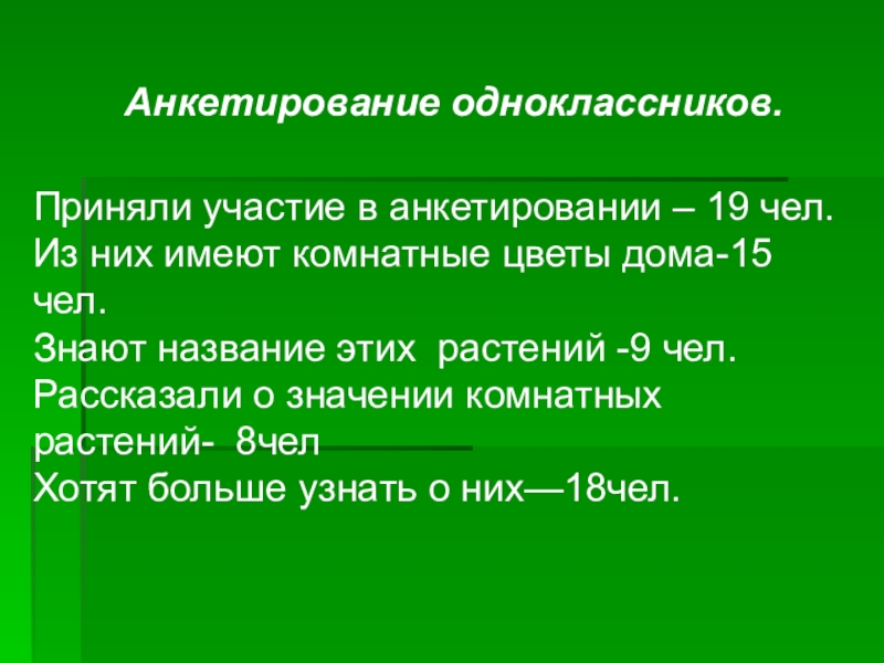 2. Провести анкетирование среди одноклассников, которое поможет выяснить их отношение к комнатным растениям.