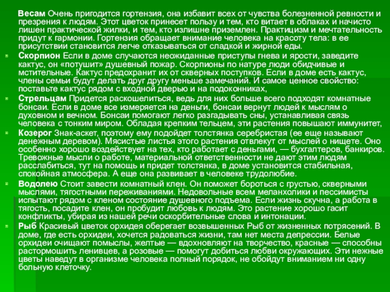 Слайд 46 Весам Очень пригодится гортензия, она избавит всех от чувства болезненной ревности
