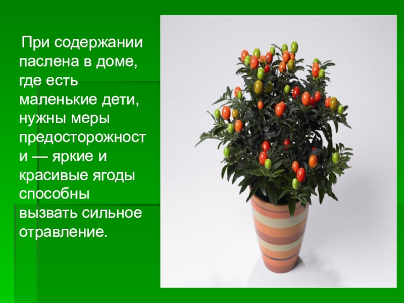 Слайд 40 При содержании паслена в доме, где есть маленькие дети,