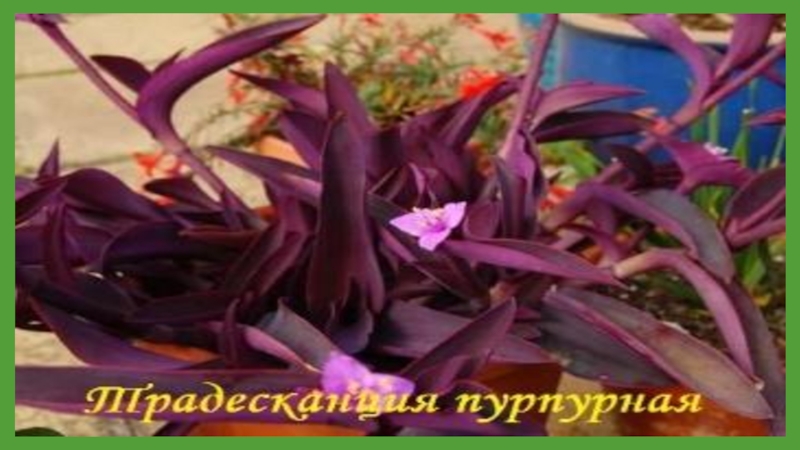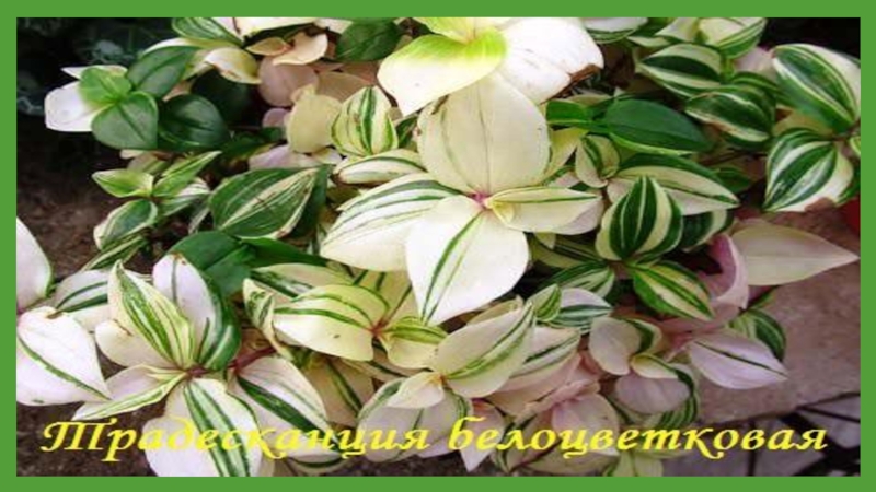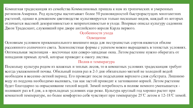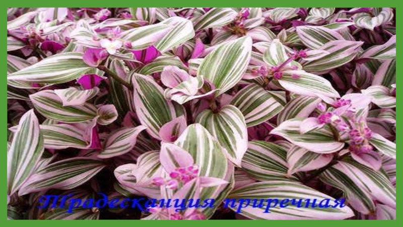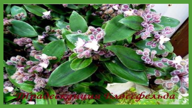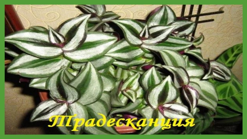 Слайд 13Комнатная традесканция из семейства Коммелиновых пришла к нам из тропических и
