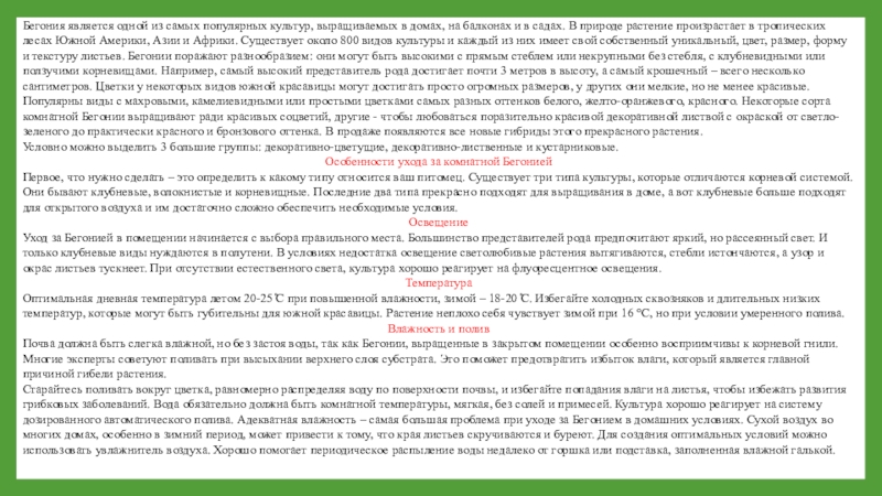 Слайд 11Бегония является одной из самых популярных культур, выращиваемых в домах, на