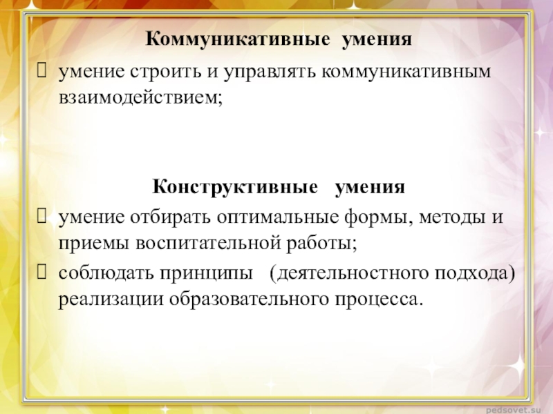 умения результативно формировать знания, умения и навыки в соответствии с образовательной программой.