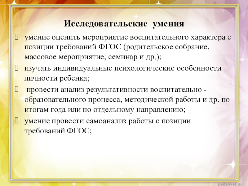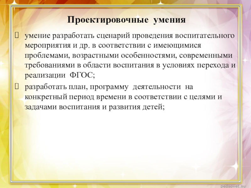 умение разработать сценарий проведения воспитательного мероприятия и др. в соответствии