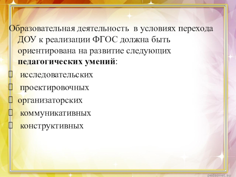 Образовательная деятельность в условиях перехода ДОУ к реализации ФГОС