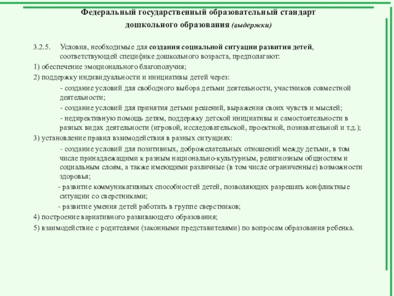 для создания социальной ситуации развития детей, соответствующей специфике дошкольного возраста, предполагают:
