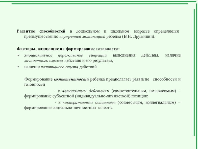 Развитие способностей в дошкольном и школьном возрасте определяется преимущественно внутренней мотивацией