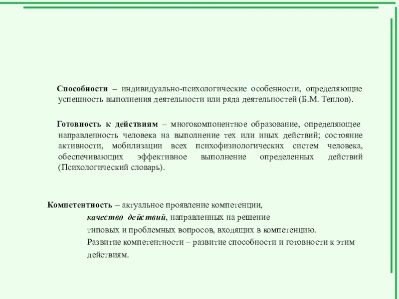 индивидуально-психологические особенности, определяющие успешность выполнения деятельности или ряда деятельностей (Б.М. Теплов).