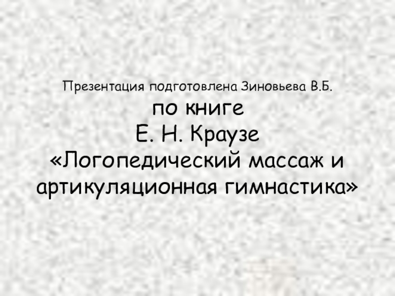 Презентация подготовлена Зиновьева В.Б. по книге Е. Н. Краузе «Логопедический массаж и артикуляционная гимнастика»
