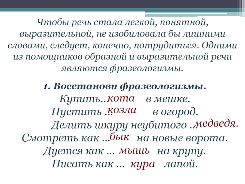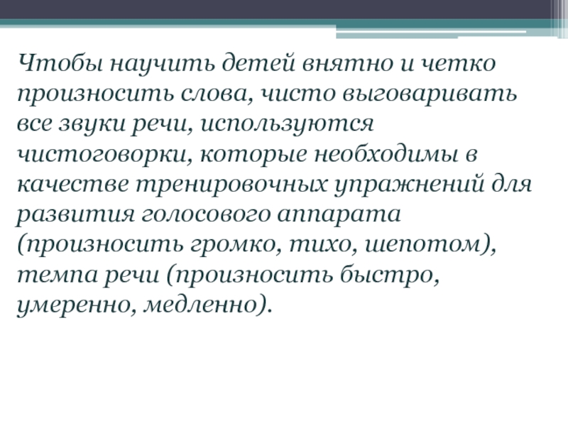 Слайд 5Чтобы научить детей внятно и четко произносить слова, чисто выговаривать все