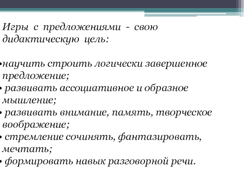 Слайд 13Игры с предложениями - свою дидактическую цель:
