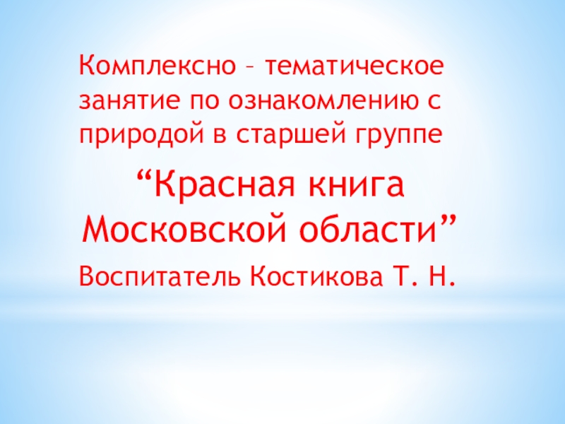 Воспитатель Костикова Т. Н.