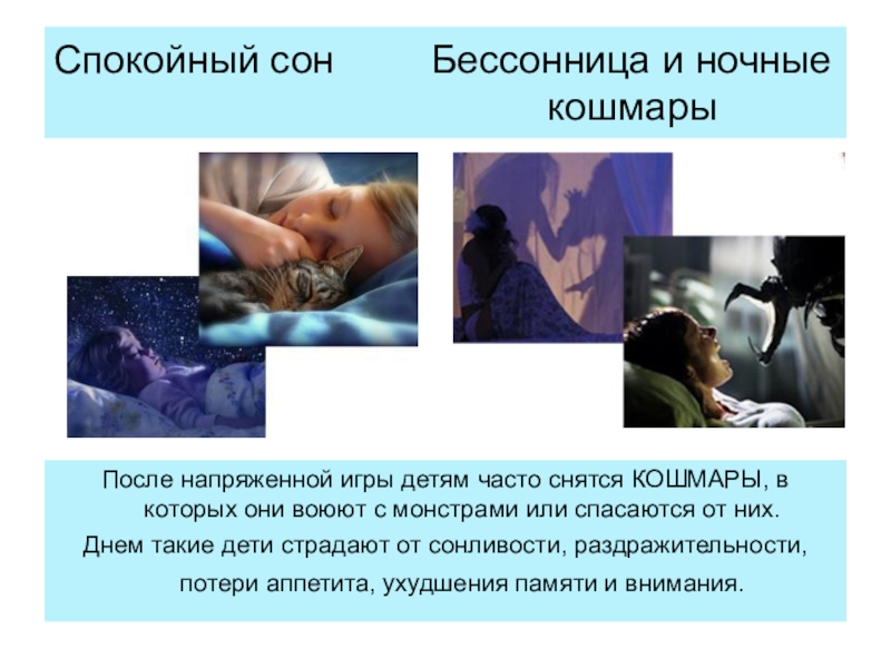 После напряженной игры детям часто снятся КОШМАРЫ, в которых они воюют с монстрами или спасаются от них.