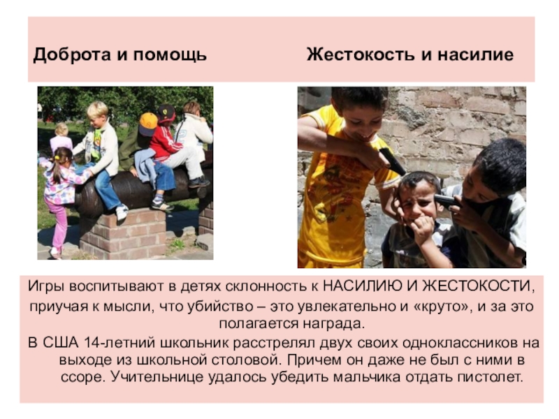 Игры воспитывают в детях склонность к НАСИЛИЮ И ЖЕСТОКОСТИ,