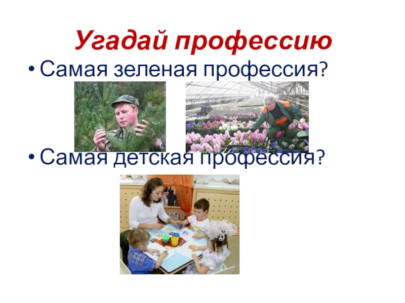 Угадай профессиюСамая зеленая профессия?Самая детская профессия?