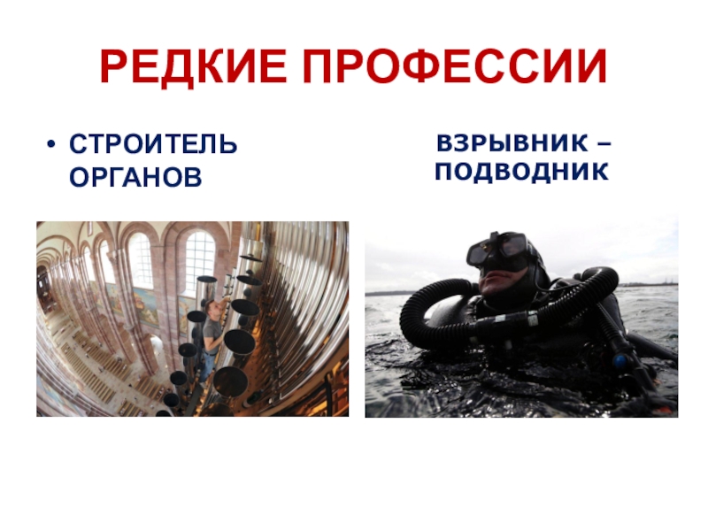 РЕДКИЕ ПРОФЕССИИСТРОИТЕЛЬ ОРГАНОВ ВЗРЫВНИК – ПОДВОДНИК