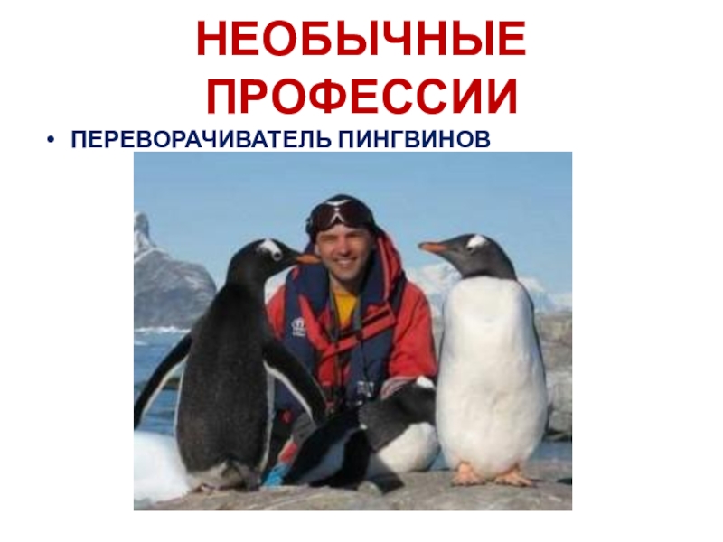 НЕОБЫЧНЫЕ ПРОФЕССИИПЕРЕВОРАЧИВАТЕЛЬ ПИНГВИНОВ