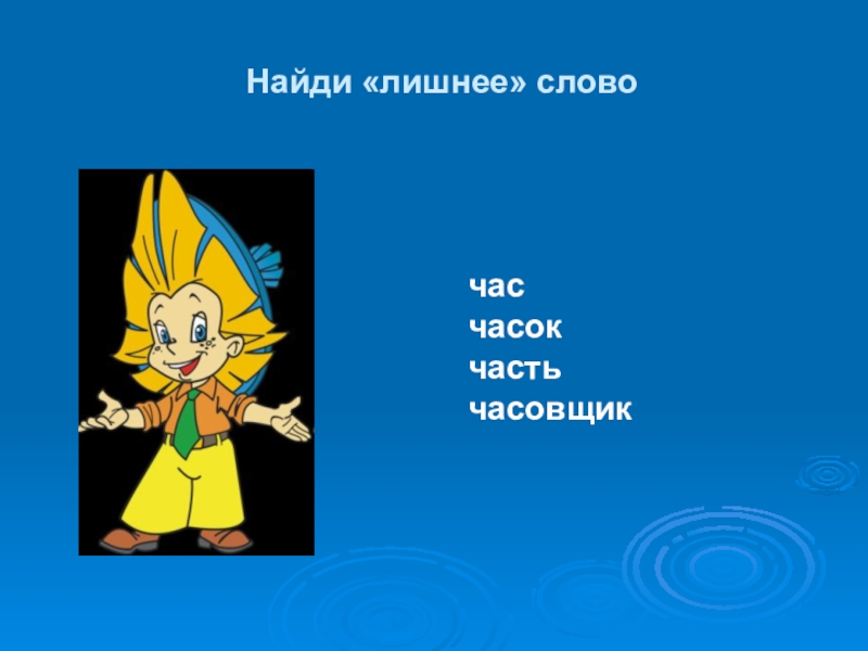 Найди «лишнее» словочасчасокчастьчасовщик