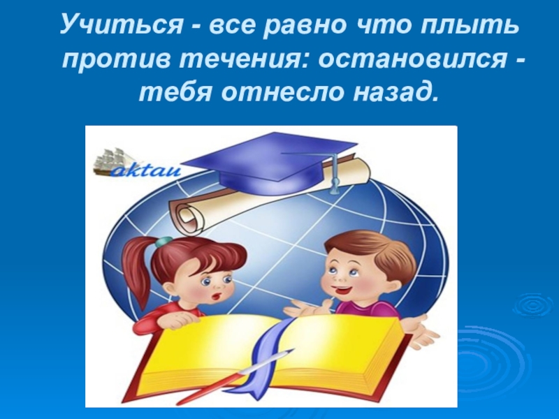 Слайд 2Учиться - все равно что плыть против течения: остановился - тебя