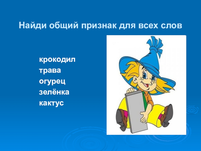 Найди общий признак для всех словкрокодилтраваогурецзелёнкакактус