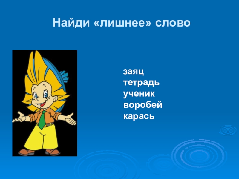 Найди «лишнее» словозаяцтетрадьученикворобейкарась