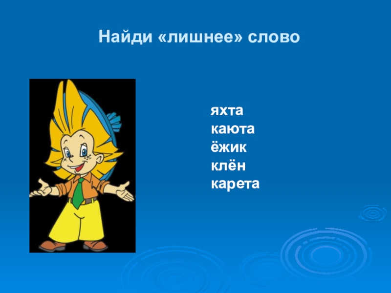 Найди «лишнее» словояхтакаютаёжикклёнкарета