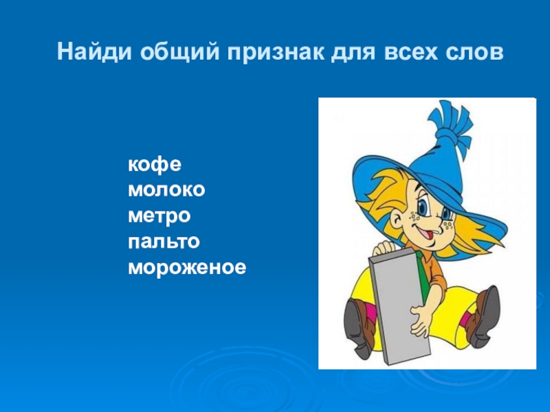 Слайд 13Найди общий признак для всех слов