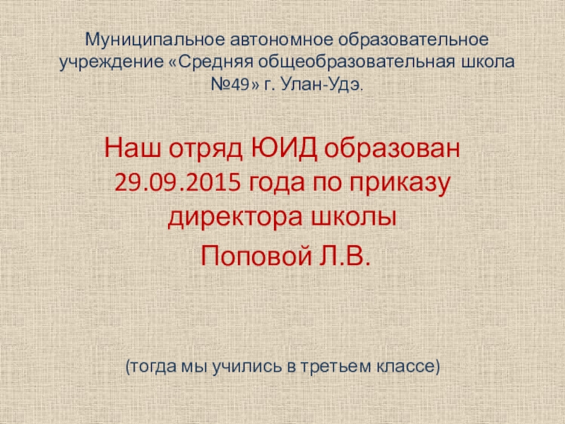 ЮИД образован 29.09.2015 года по приказу директора школы