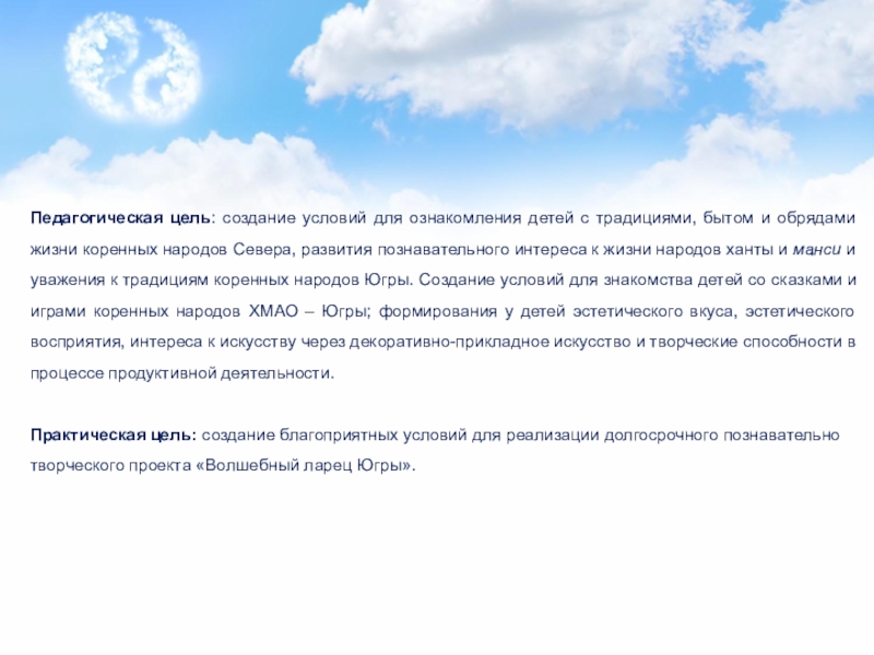 Практическая цель: создание благоприятных условий для реализации долгосрочного познавательно творческого проекта «Волшебный ларец Югры».