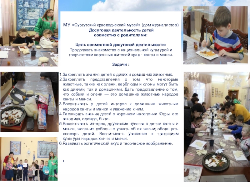 Развития совместного творчества детей, родителей и работников МУ «Сургутский краеведческий музей»;