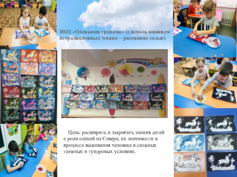 Слайд 15НОД «Оленьими тропами» (с использованием нетрадиционных техник – рисование солью)