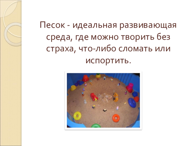 Слайд 2Песок - идеальная развивающая среда, где можно творить без страха, что-либо