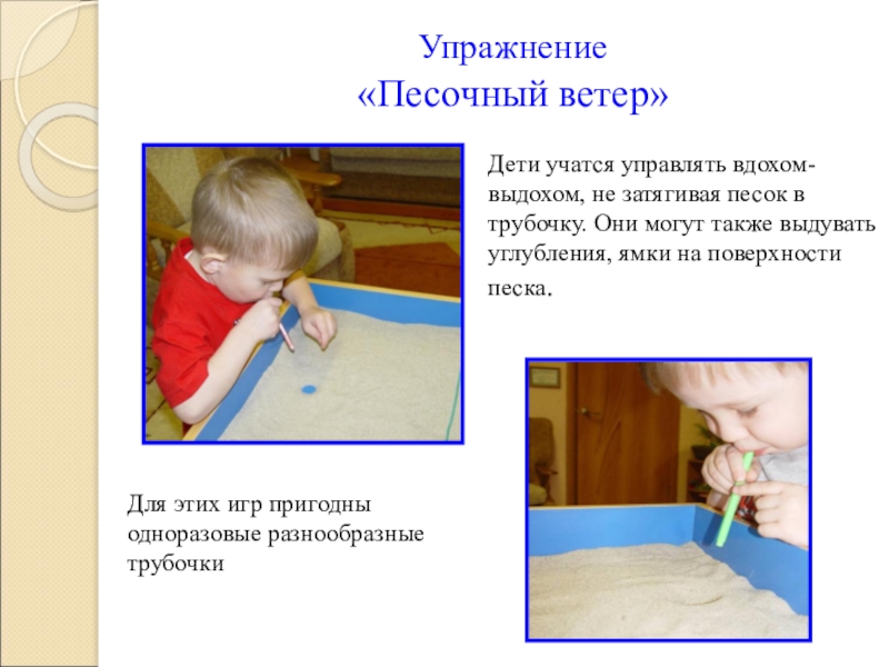 управлять вдохом-выдохом, не затягивая песок в трубочку. Они могут также выдувать углубления, ямки на поверхности песка.