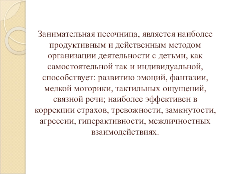 Слайд 3Занимательная песочница, является наиболее продуктивным и действенным методом организации деятельности с