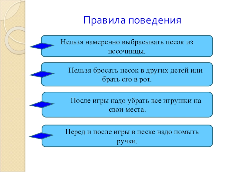 Нельзя бросать песок в других детей или брать его в рот.