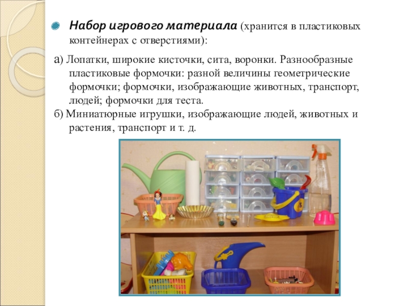 Слайд 8Набор игрового материала (хранится в пластиковых контейнерах с отверстиями):