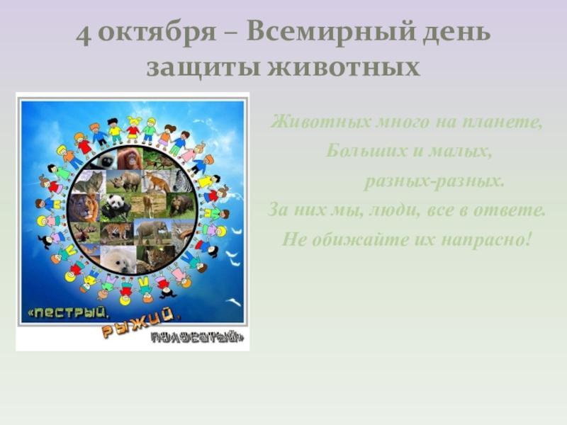 4 октября – Всемирный день защиты животных