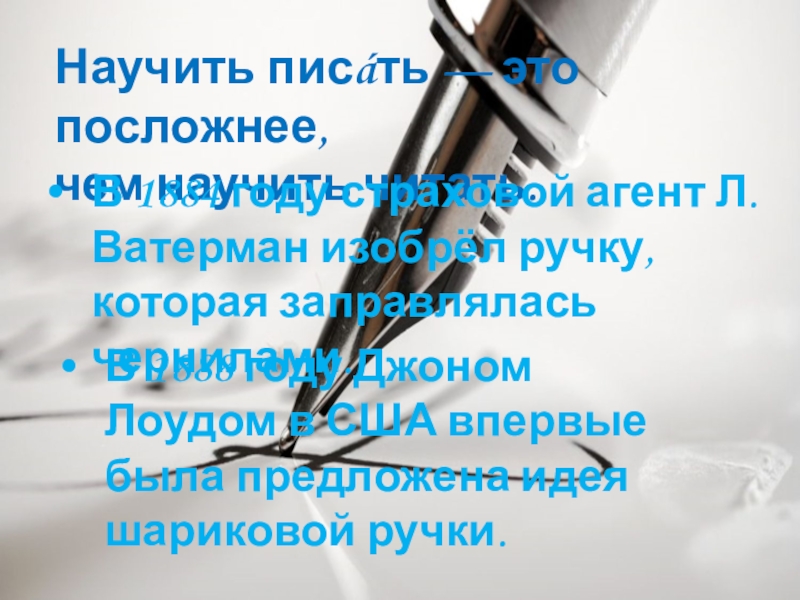 В 1888 году Джоном Лоудом в США впервые была предложена идея шариковой ручки.